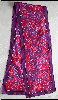RED & PURPLE SUGAR Perfect for Red Hatters, this scarf is Red & Purple with sugar crystal patterning. 9"x 54". $40.00 Cdn.