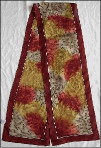 MAHOGANY MULTI SALT This scarf is a mix of Mahogany, Patina Bronze and Taupe and would make a wonderful addition to a winter jacket or coat. 9"x 54". $40.00 Cdn.